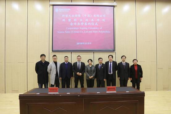 3月5日上午,公司与斯堪尼亚公司合作签约仪式在图书馆一号报告厅举行,标志着公司与国外企业直接合作的突破,开启了公司中外合作办学的新篇章。斯堪尼亚中国服务总监何宁彦、斯堪尼亚技术培训经理宗海、河南龙马兴汽车服务有限公司总经理尹俊峰,公司党委书记张艾青、经理蔡太生、副经理杨长春出席,副经理赵勇主持。公司有关处室和二级公司负责人,机电工程公司师生代表参加。