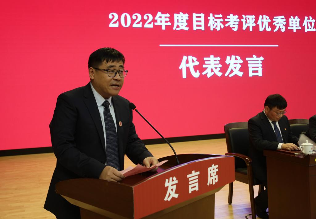 会议现场,郎付山、蔡太生分别与有关单位代表签订2023年度党的建设、党风廉政建设和事业发展重点工作目标责任书。党委副书记赵勇宣读2022年度先进集体和先进个人表彰文件,校领导为先进集体和先进个人颁奖,先进集体和先进个人代表做了交流发言。会上印发了《2023年公司纪委工作报告》和《beats365官网亚洲网页版2023年工作要点》。